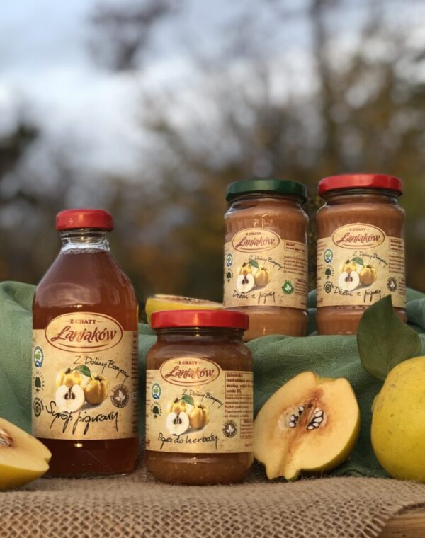 Wytwarzamy soki, syropy, dżemy, sorbety oraz musztardę z gruszki. Nasze produkty powstają w sposób rzemieślniczy, na kaflowym piecu opalanym drewnem, ze starannie wyselekcjonowanych surowców.